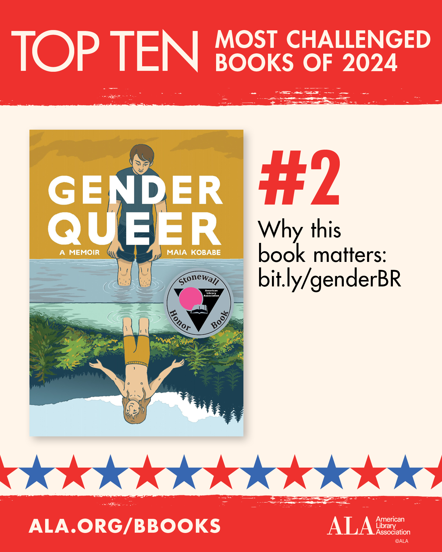 The Top Ten Most Challenged Books of 2024 infographic was released as part of the 2025 State of America's Libraries Report.